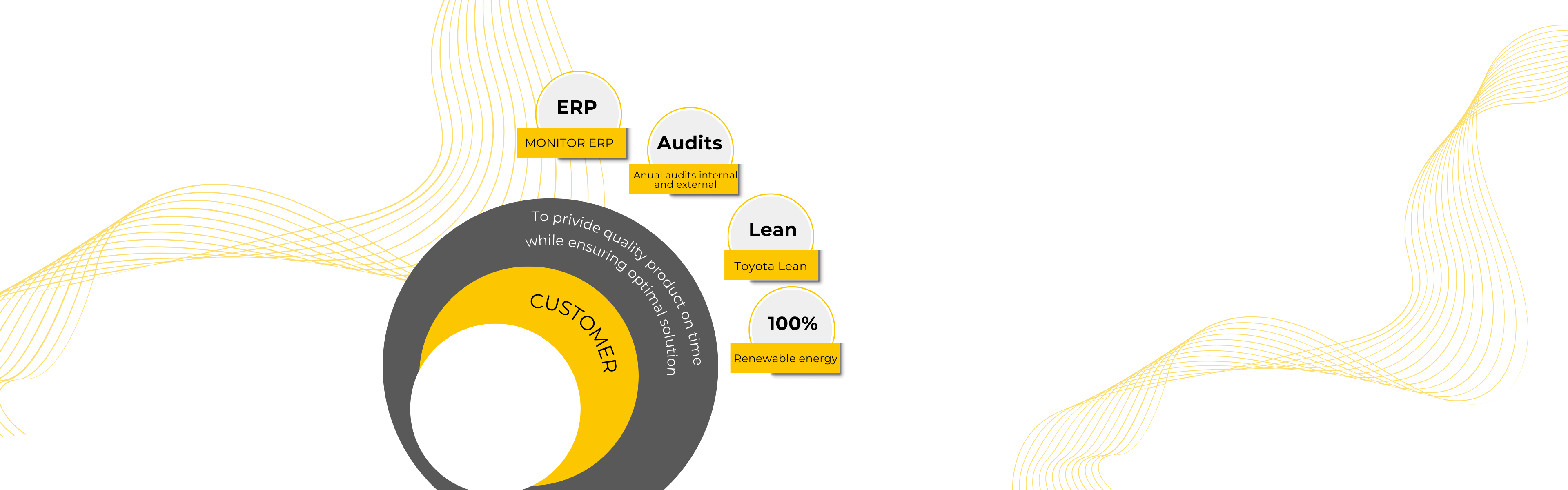 We prioritize quality, efficiency, and sustainability through advanced ERP systems, regular audits, lean practices, and 100% renewable energy. Our customer-centric approach ensures optimal solutions and timely delivery.